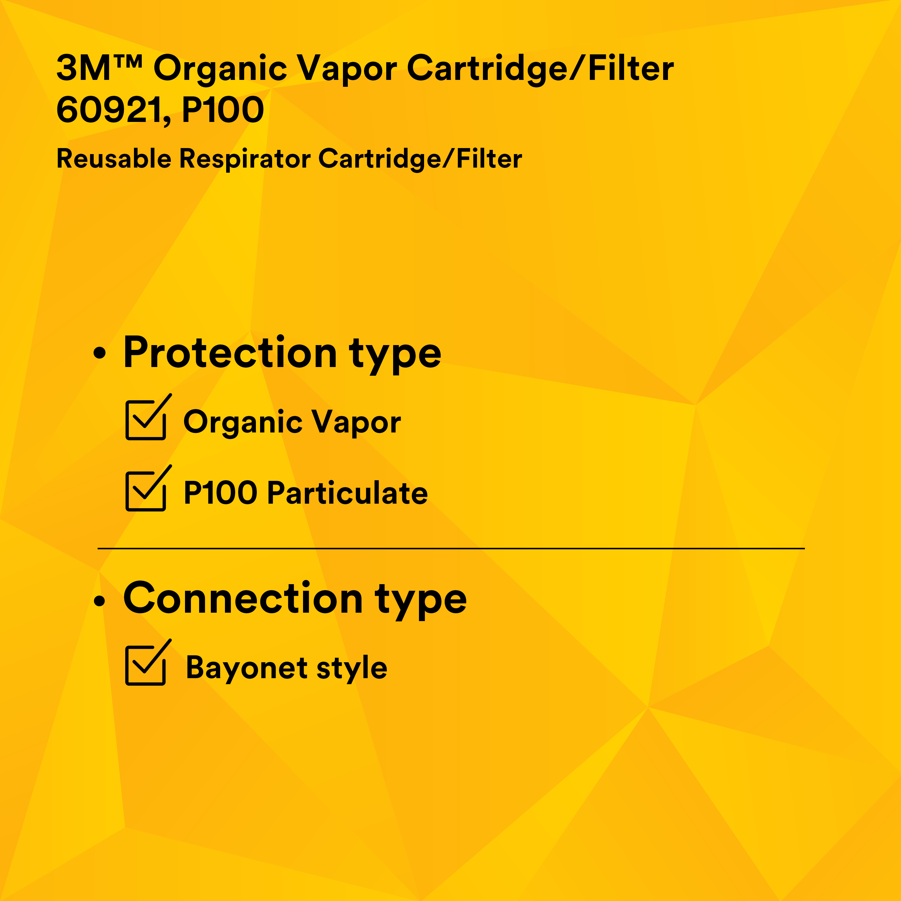 3M™ Gas, Vapour and Particulate Filters have a bayonet-style connection that fits any full-face 3M™ Reusable Masks, and they’re designed to optimise your field of vision. Our filters offer lightweight and well-balanced breathing protection for hazardous environments.